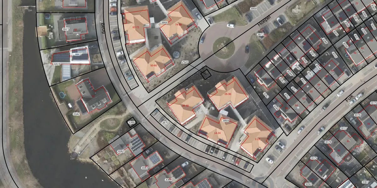 Het perceel waarop het adres ligt is URK00-C-3869. De afkorting 'URK00' staat voor kadastrale gemeente Urk. Het perceel is kleiner dan gemiddeld in Urk. Het perceel is 1921 m² groot, terwijl het gemiddelde ligt op 1,2 ha. Het grootste perceel in de kadastrale gemeente is 78,20 km². Het kleinste perceel heeft een oppervlakte van 0 m². Op het perceel zijn 24 adressen aanwezig. In de Basisregistratie Kadaster (BRK) werden de grenzen van het perceel geregistreerd op 17-03-2020.
