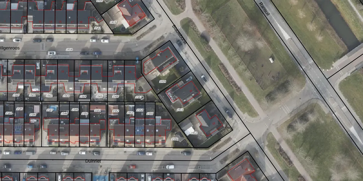 Gebruik de zoekbalk of klik op een perceel voor informatie over de adressen binnen dit perceel.