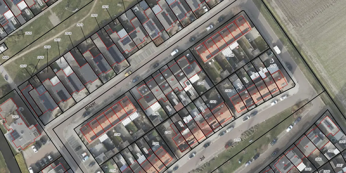 Gebruik de zoekbalk of klik op een perceel voor informatie over de adressen binnen dit perceel.