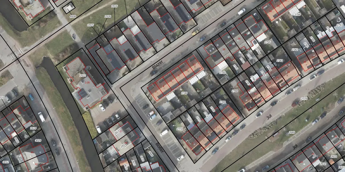 Het perceel waarop Blazer 6 staat heeft een oppervlakte van 1010 m². Dit is een zeer groot perceel. De perceeloppervlakte wordt geregistreerd door het Kadaster. Gedetailleerde informatie over de maten van dit perceel kunt u vinden in het rapport Kadastrale kaart met maatvoering van Blazer 6.