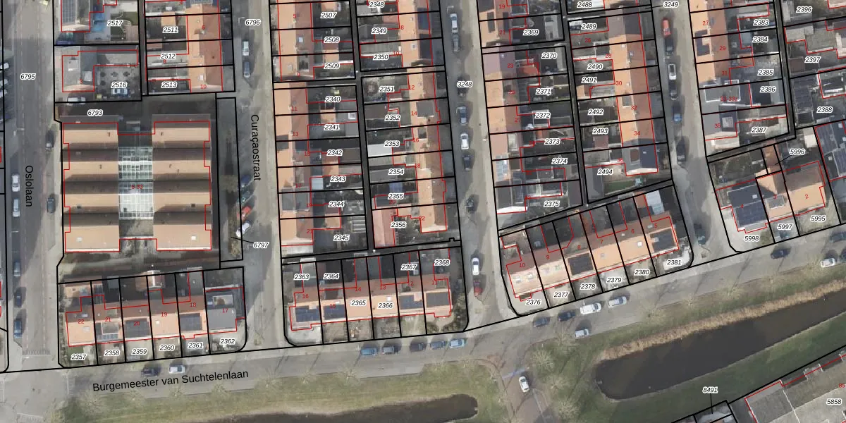 Het perceel waarop Bonairestraat 22 staat heeft een oppervlakte van 185 m². Dit is een middelgroot perceel. De perceeloppervlakte wordt geregistreerd door het Kadaster. Gedetailleerde informatie over de maten van dit perceel kunt u vinden in het rapport Kadastrale kaart met maatvoering van Bonairestraat 22.