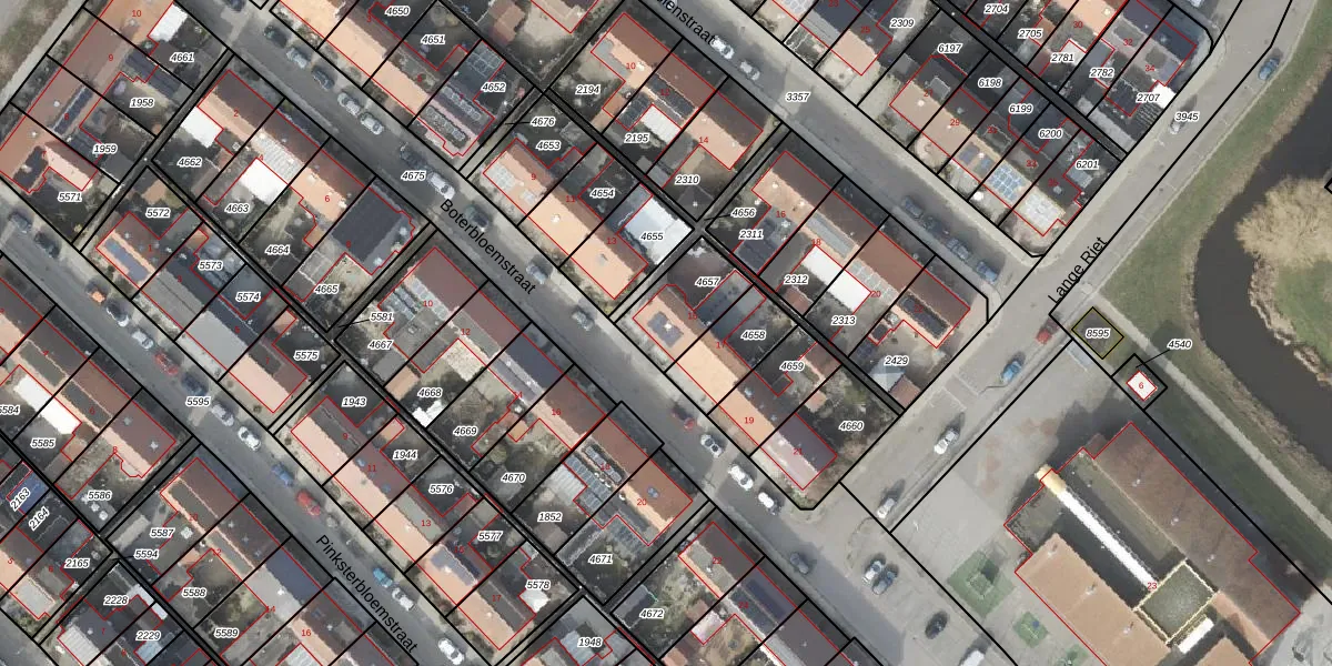 Het perceel waarop Boterbloemstraat 15 staat heeft een oppervlakte van 199 m². Dit is een middelgroot perceel. De perceeloppervlakte wordt geregistreerd door het Kadaster. Gedetailleerde informatie over de maten van dit perceel kunt u vinden in het rapport Kadastrale kaart met maatvoering van Boterbloemstraat 15.