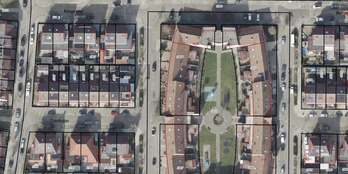 Het perceel waarop Buizerd 15 staat heeft een oppervlakte van 1350 m². Dit is een zeer groot perceel. De perceeloppervlakte wordt geregistreerd door het Kadaster. Gedetailleerde informatie over de maten van dit perceel kunt u vinden in het rapport Kadastrale kaart met maatvoering van Buizerd 15.