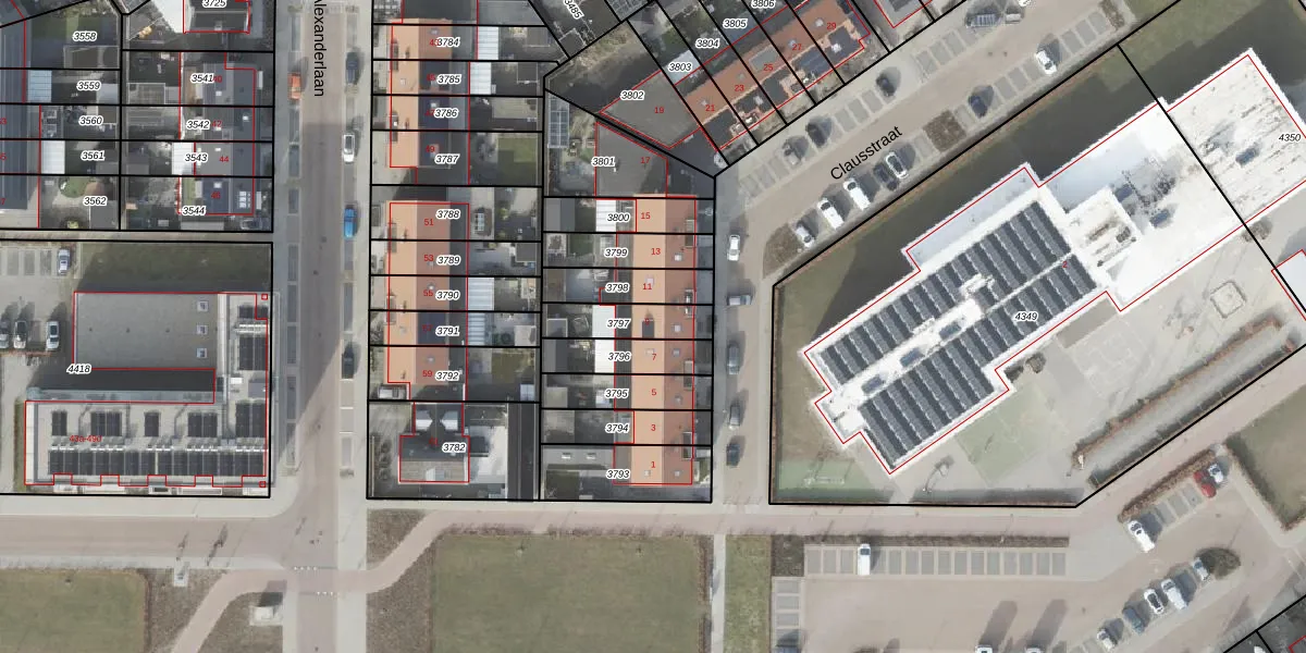 Gebruik de zoekbalk of klik op een perceel voor informatie over de adressen binnen dit perceel.