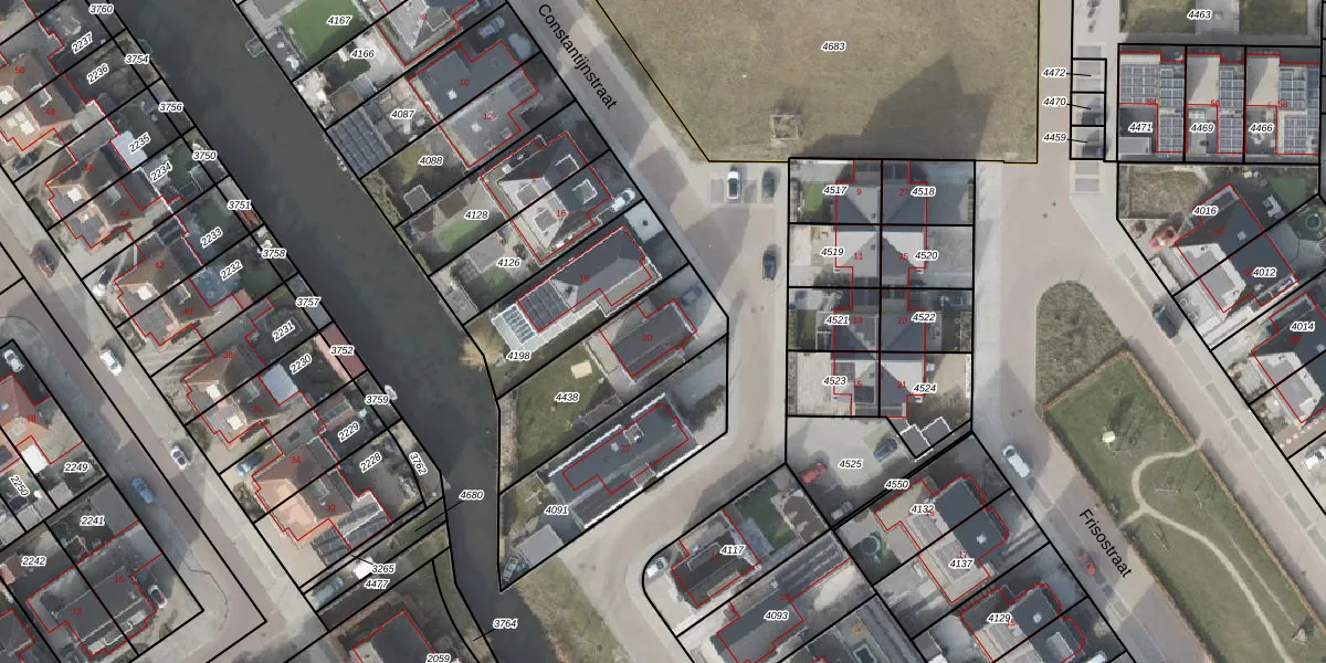 Constantijnstraat 20 is gelegen op kadastraal perceel URK00C4438. Deze kadastrale aanduiding is uniek en wordt gebruikt door het Kadaster om eigendomsrechten en andere zakelijke rechten vast te leggen. Het perceel maakt onderdeel uit van de kadastrale gemeente Urk.