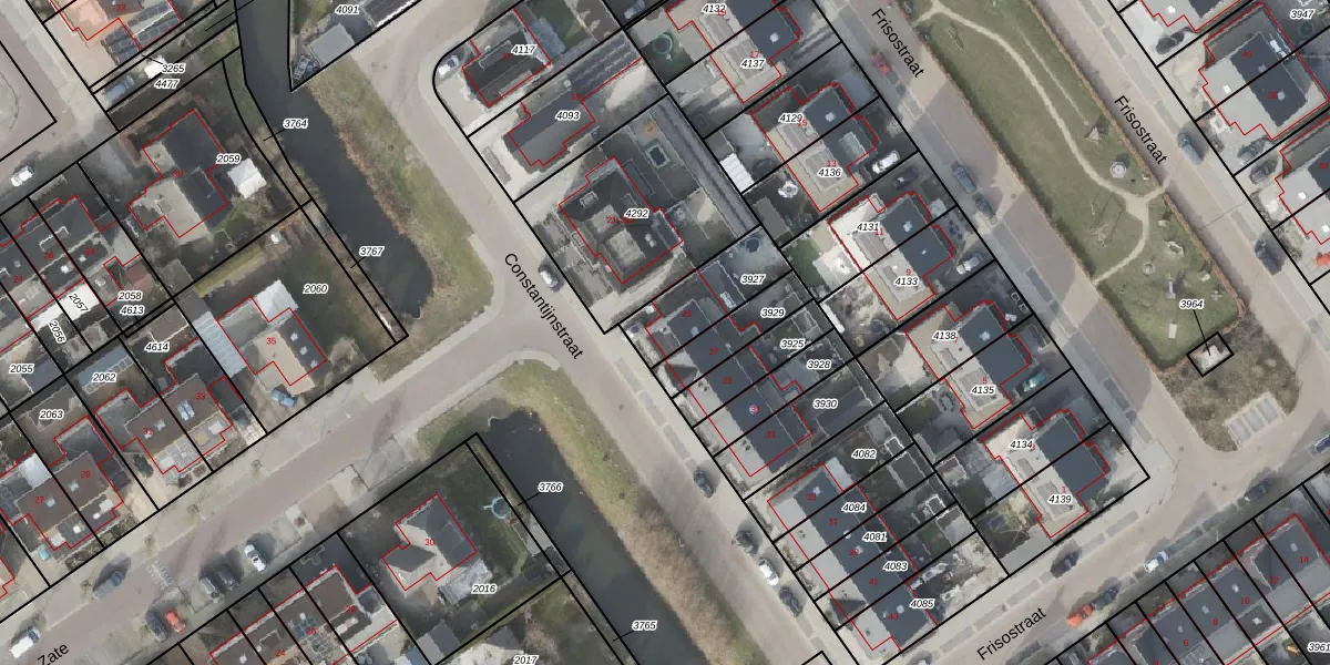 Het perceel waarop Constantijnstraat 25 staat heeft een oppervlakte van 219 m². Dit is een middelgroot perceel. De perceeloppervlakte wordt geregistreerd door het Kadaster. Gedetailleerde informatie over de maten van dit perceel kunt u vinden in het rapport Kadastrale kaart met maatvoering van Constantijnstraat 25.
