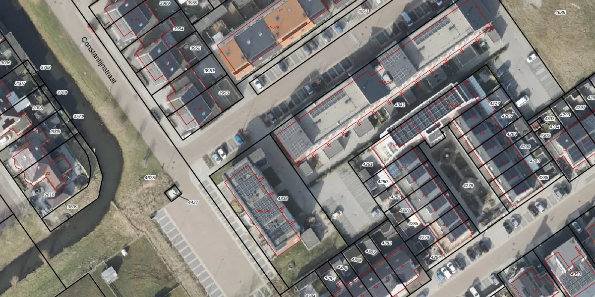 Het perceel waarop Constantijnstraat 30-a staat heeft een oppervlakte van 2840 m². Dit is een zeer groot perceel. De perceeloppervlakte wordt geregistreerd door het Kadaster. Gedetailleerde informatie over de maten van dit perceel kunt u vinden in het rapport Kadastrale kaart met maatvoering van Constantijnstraat 30-a.