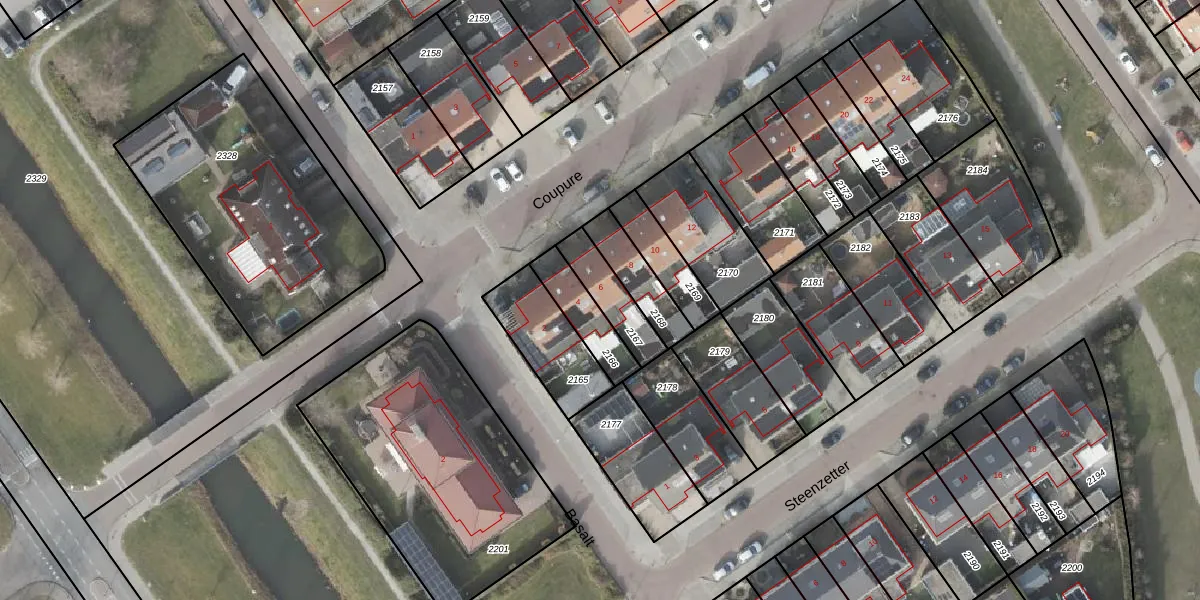 Het perceel waarop Coupure 6 staat heeft een oppervlakte van 135 m². Dit is een middelgroot perceel. De perceeloppervlakte wordt geregistreerd door het Kadaster. Gedetailleerde informatie over de maten van dit perceel kunt u vinden in het rapport Kadastrale kaart met maatvoering van Coupure 6.