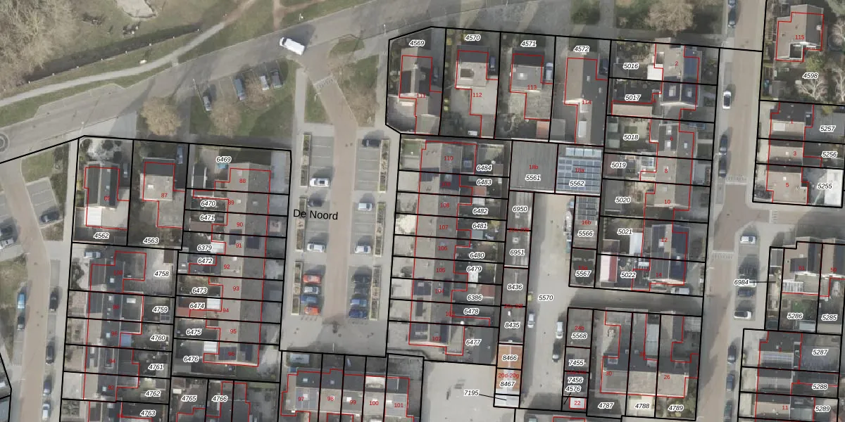 Het perceel waarop De Noord 108 staat heeft een oppervlakte van 133 m². Dit is een middelgroot perceel. De perceeloppervlakte wordt geregistreerd door het Kadaster. Gedetailleerde informatie over de maten van dit perceel kunt u vinden in het rapport Kadastrale kaart met maatvoering van De Noord 108.