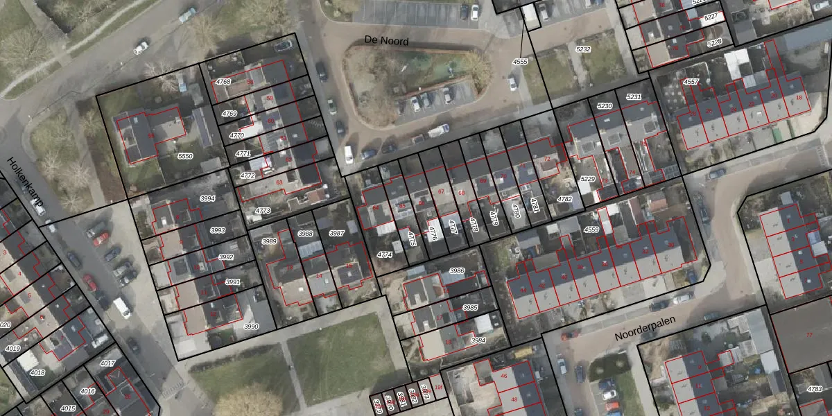 Het perceel waarop De Noord 66 staat heeft een oppervlakte van 131 m². Dit is een middelgroot perceel. De perceeloppervlakte wordt geregistreerd door het Kadaster. Gedetailleerde informatie over de maten van dit perceel kunt u vinden in het rapport Kadastrale kaart met maatvoering van De Noord 66.