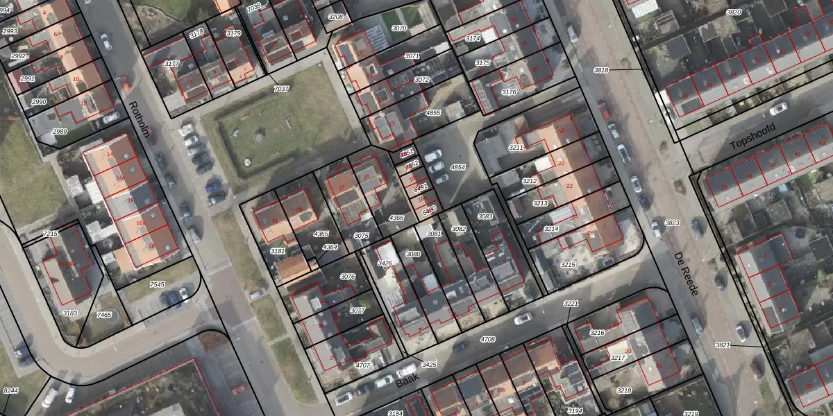 Het perceel waarop De Reede 16-e staat heeft een oppervlakte van 39 m². Dit is een klein perceel. De perceeloppervlakte wordt geregistreerd door het Kadaster. Gedetailleerde informatie over de maten van dit perceel kunt u vinden in het rapport Kadastrale kaart met maatvoering van De Reede 16-e.