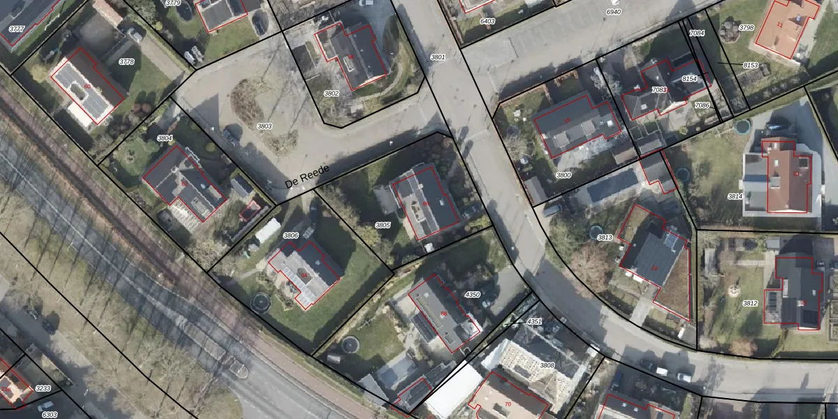 Het perceel waarop De Reede 66 staat heeft een oppervlakte van 827 m². Dit is een groot perceel. De perceeloppervlakte wordt geregistreerd door het Kadaster. Gedetailleerde informatie over de maten van dit perceel kunt u vinden in het rapport Kadastrale kaart met maatvoering van De Reede 66.