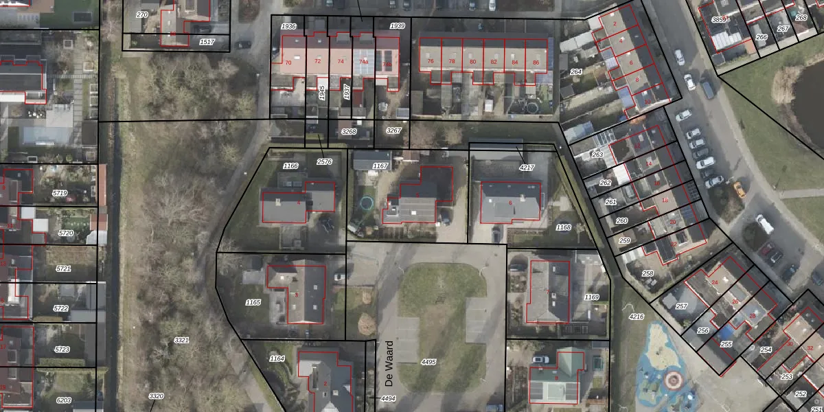 Het perceel waarop De Waard 5 staat heeft een oppervlakte van 666 m². Dit is een groot perceel. De perceeloppervlakte wordt geregistreerd door het Kadaster. Gedetailleerde informatie over de maten van dit perceel kunt u vinden in het rapport Kadastrale kaart met maatvoering van De Waard 5.