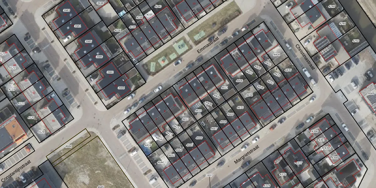 Het perceel waarop Emmastraat 12 staat heeft een oppervlakte van 181 m². Dit is een middelgroot perceel. De perceeloppervlakte wordt geregistreerd door het Kadaster. Gedetailleerde informatie over de maten van dit perceel kunt u vinden in het rapport Kadastrale kaart met maatvoering van Emmastraat 12.