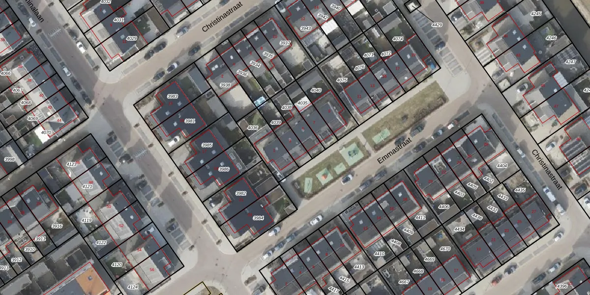 Het perceel waarop Emmastraat 3 staat heeft een oppervlakte van 136 m². Dit is een middelgroot perceel. De perceeloppervlakte wordt geregistreerd door het Kadaster. Gedetailleerde informatie over de maten van dit perceel kunt u vinden in het rapport Kadastrale kaart met maatvoering van Emmastraat 3.
