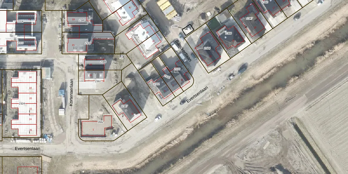 Evertsenlaan 7 is gelegen op kadastraal perceel URK00D2332. Deze kadastrale aanduiding is uniek en wordt gebruikt door het Kadaster om eigendomsrechten en andere zakelijke rechten vast te leggen. Het perceel maakt onderdeel uit van de kadastrale gemeente Urk.