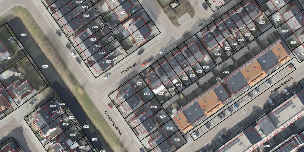 Het perceel waarop Frisostraat 2 staat heeft een oppervlakte van 227 m². Dit is een middelgroot perceel. De perceeloppervlakte wordt geregistreerd door het Kadaster. Gedetailleerde informatie over de maten van dit perceel kunt u vinden in het rapport Kadastrale kaart met maatvoering van Frisostraat 2.