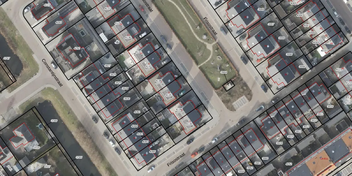Het perceel waarop Frisostraat 5 staat heeft een oppervlakte van 257 m². Dit is een middelgroot perceel. De perceeloppervlakte wordt geregistreerd door het Kadaster. Gedetailleerde informatie over de maten van dit perceel kunt u vinden in het rapport Kadastrale kaart met maatvoering van Frisostraat 5.