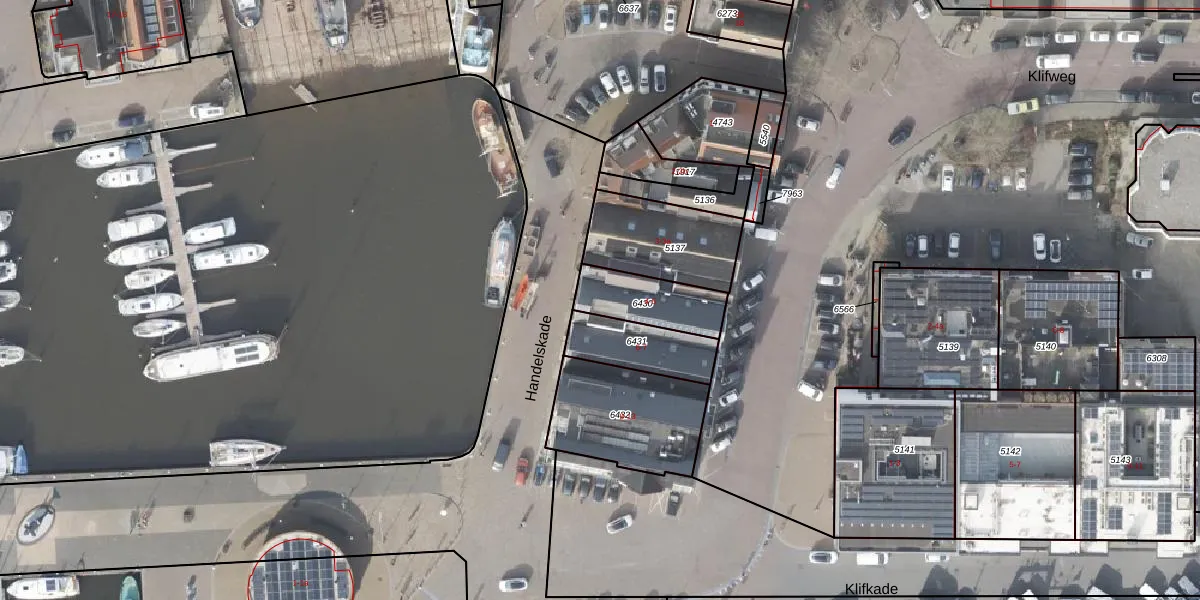Handelskade 5 is gelegen op kadastraal perceel URK00B6430. Deze kadastrale aanduiding is uniek en wordt gebruikt door het Kadaster om eigendomsrechten en andere zakelijke rechten vast te leggen. Het perceel maakt onderdeel uit van de kadastrale gemeente Urk.