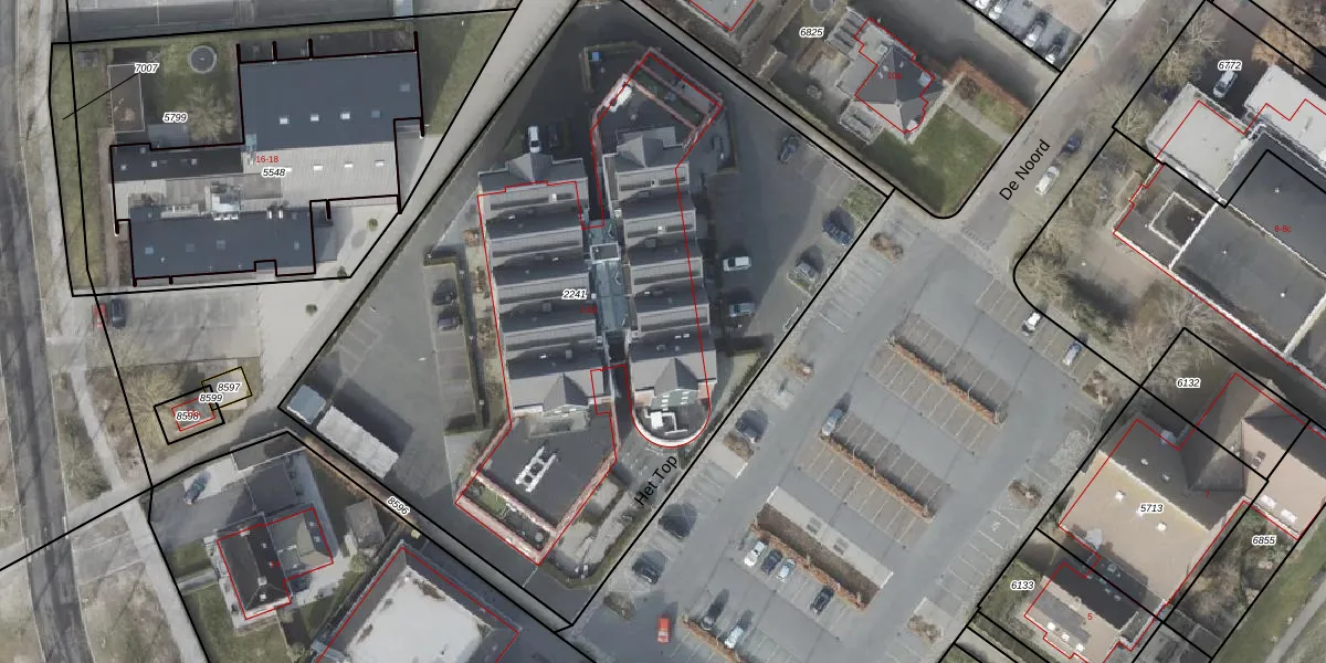 Het perceel waarop Het Top 38 staat heeft een oppervlakte van 4400 m². Dit is een zeer groot perceel. De perceeloppervlakte wordt geregistreerd door het Kadaster. Gedetailleerde informatie over de maten van dit perceel kunt u vinden in het rapport Kadastrale kaart met maatvoering van Het Top 38.