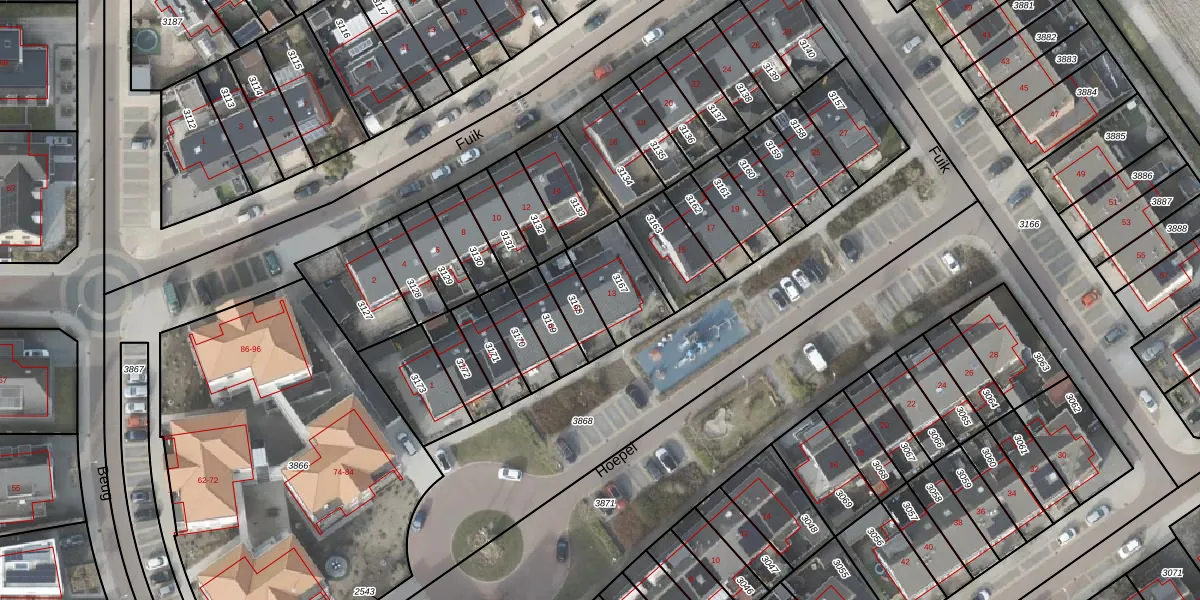 Het perceel waarop Hoepel 13 staat heeft een oppervlakte van 195 m². Dit is een middelgroot perceel. De perceeloppervlakte wordt geregistreerd door het Kadaster. Gedetailleerde informatie over de maten van dit perceel kunt u vinden in het rapport Kadastrale kaart met maatvoering van Hoepel 13.