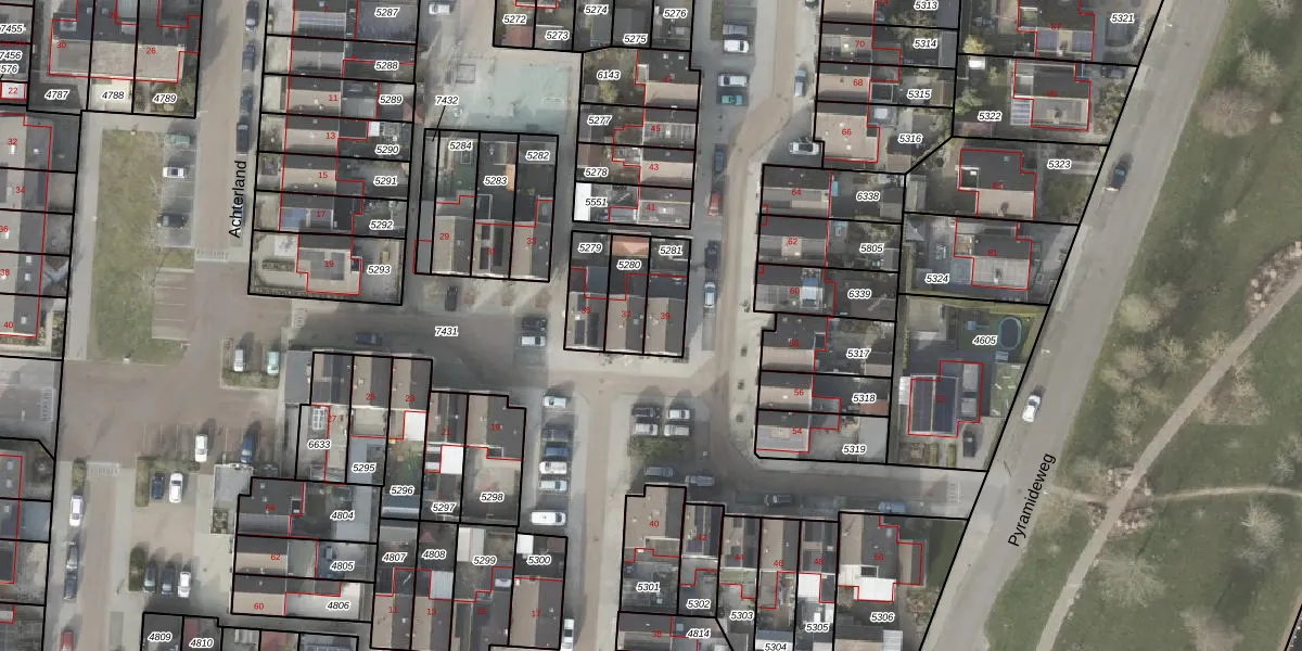 Het perceel waarop Hooiland 39 staat heeft een oppervlakte van 111 m². Dit is een middelgroot perceel. De perceeloppervlakte wordt geregistreerd door het Kadaster. Gedetailleerde informatie over de maten van dit perceel kunt u vinden in het rapport Kadastrale kaart met maatvoering van Hooiland 39.
