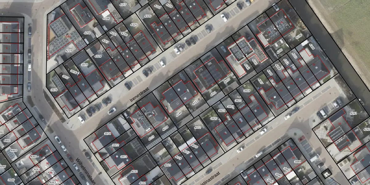Gebruik de zoekbalk of klik op een perceel voor informatie over de adressen binnen dit perceel.