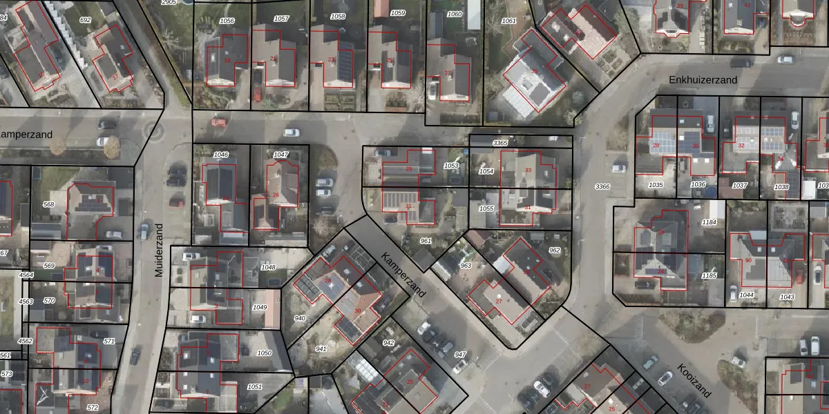 Het perceel waarop Kamperzand 31 staat heeft een oppervlakte van 360 m². Dit is een groot perceel. De perceeloppervlakte wordt geregistreerd door het Kadaster. Gedetailleerde informatie over de maten van dit perceel kunt u vinden in het rapport Kadastrale kaart met maatvoering van Kamperzand 31.