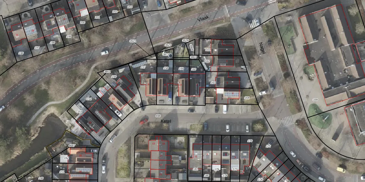 Het perceel waarop Ketel 4 staat heeft een oppervlakte van 223 m². Dit is een middelgroot perceel. De perceeloppervlakte wordt geregistreerd door het Kadaster. Gedetailleerde informatie over de maten van dit perceel kunt u vinden in het rapport Kadastrale kaart met maatvoering van Ketel 4.