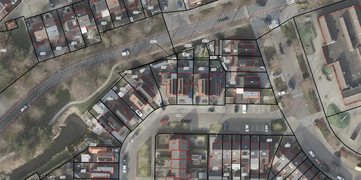 Het perceel waarop Ketel 6 staat heeft een oppervlakte van 222 m². Dit is een middelgroot perceel. De perceeloppervlakte wordt geregistreerd door het Kadaster. Gedetailleerde informatie over de maten van dit perceel kunt u vinden in het rapport Kadastrale kaart met maatvoering van Ketel 6.
