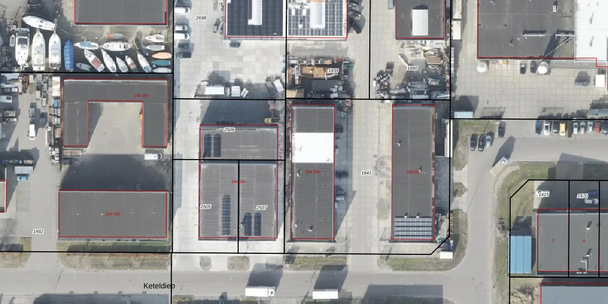 Keteldiep 25-b is gelegen op kadastraal perceel URK00D1841. Deze kadastrale aanduiding is uniek en wordt gebruikt door het Kadaster om eigendomsrechten en andere zakelijke rechten vast te leggen. Het perceel maakt onderdeel uit van de kadastrale gemeente Urk.