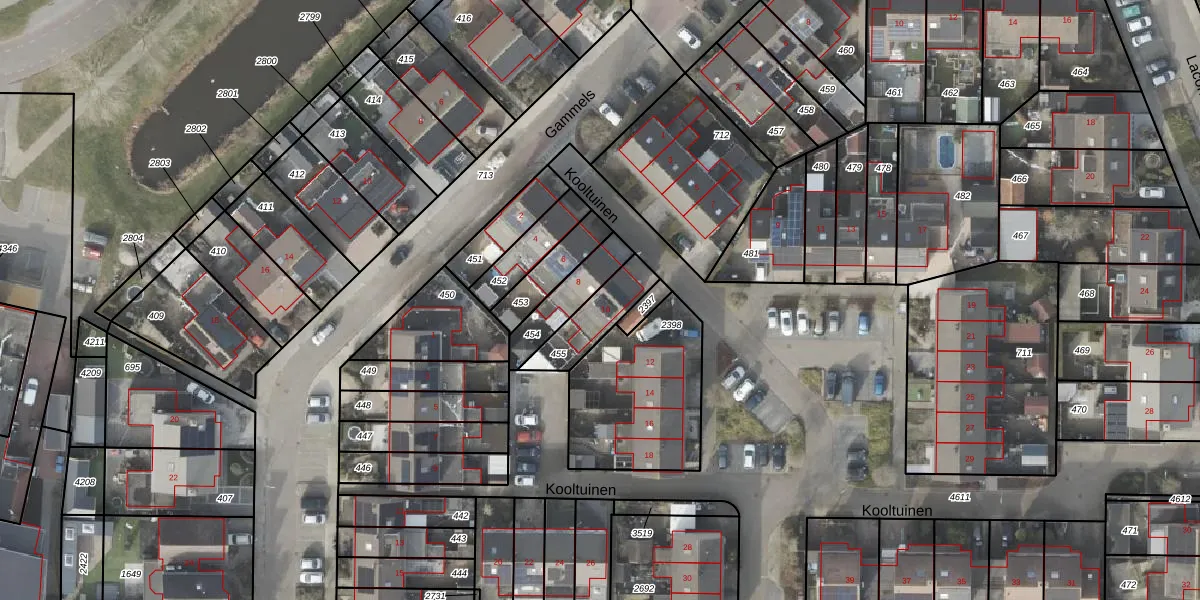 Gebruik de zoekbalk of klik op een perceel voor informatie over de adressen binnen dit perceel.