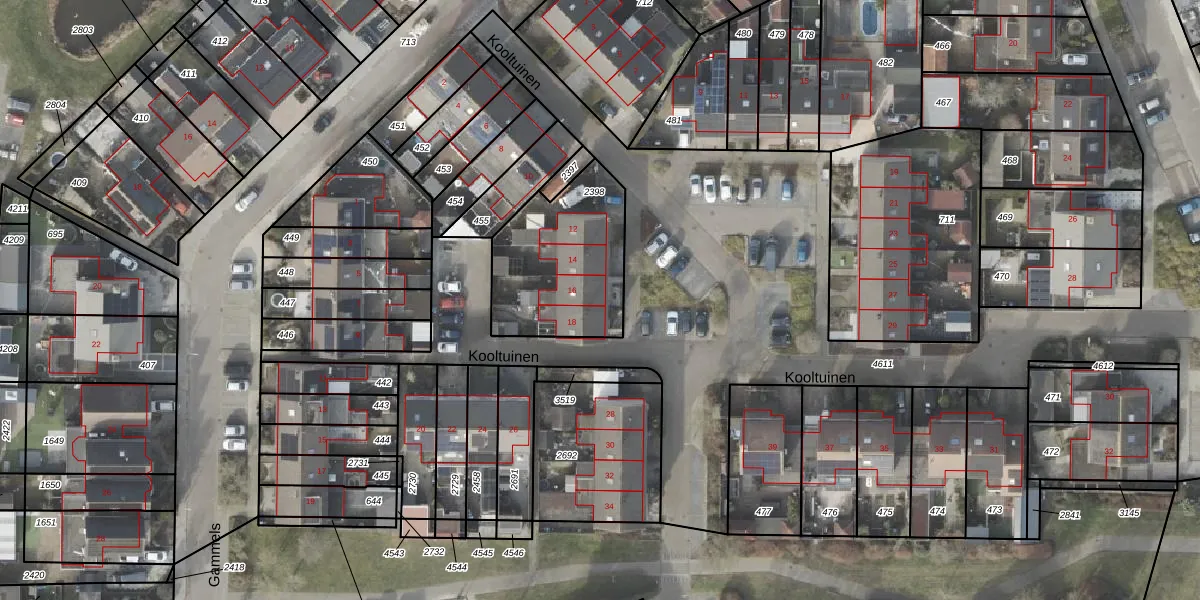 Het perceel waarop Kooltuinen 16 staat heeft een oppervlakte van 532 m². Dit is een groot perceel. De perceeloppervlakte wordt geregistreerd door het Kadaster. Gedetailleerde informatie over de maten van dit perceel kunt u vinden in het rapport Kadastrale kaart met maatvoering van Kooltuinen 16.