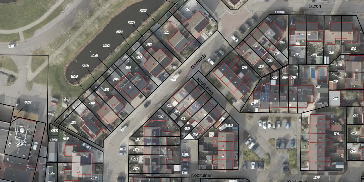 Gebruik de zoekbalk of klik op een perceel voor informatie over de adressen binnen dit perceel.