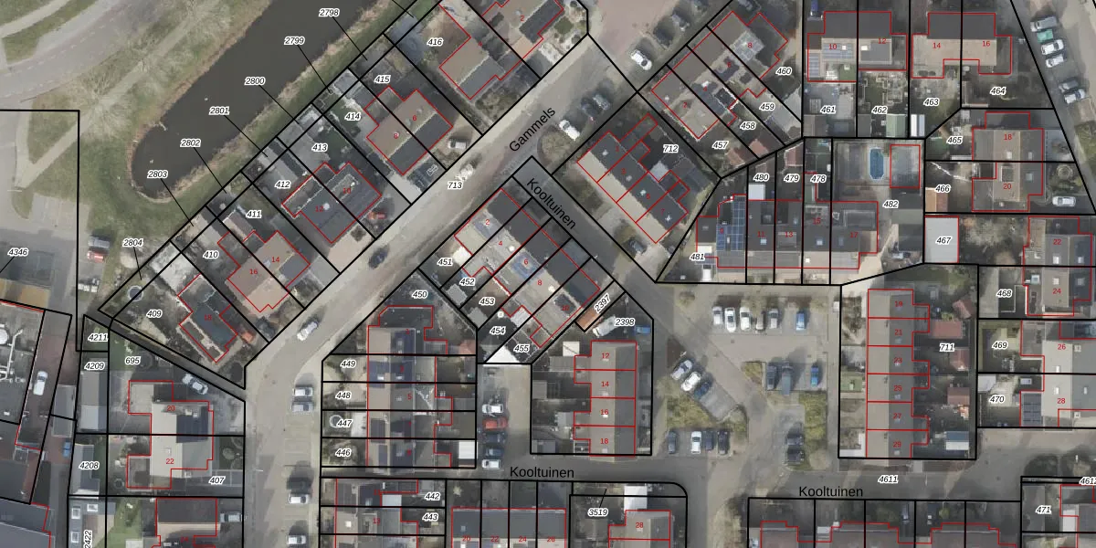 Gebruik de zoekbalk of klik op een perceel voor informatie over de adressen binnen dit perceel.