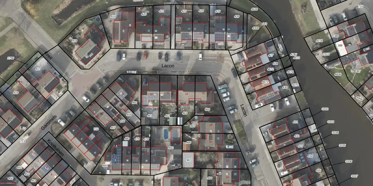 Het perceel waarop Lacon 14 staat heeft een oppervlakte van 239 m². Dit is een middelgroot perceel. De perceeloppervlakte wordt geregistreerd door het Kadaster. Gedetailleerde informatie over de maten van dit perceel kunt u vinden in het rapport Kadastrale kaart met maatvoering van Lacon 14.