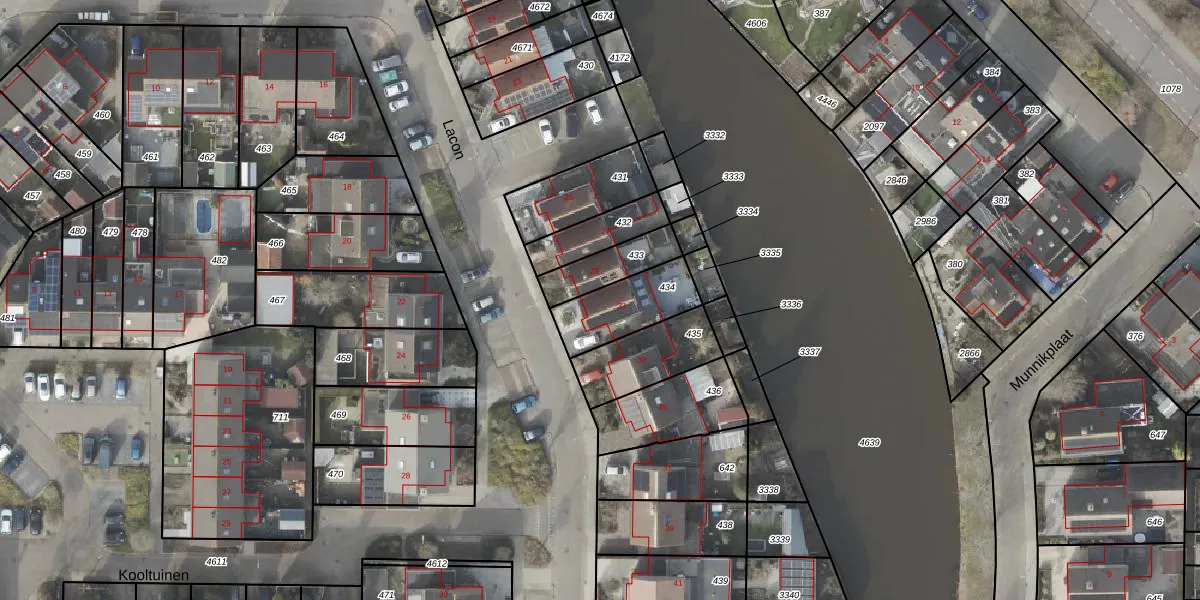 Gebruik de zoekbalk of klik op een perceel voor informatie over de adressen binnen dit perceel.