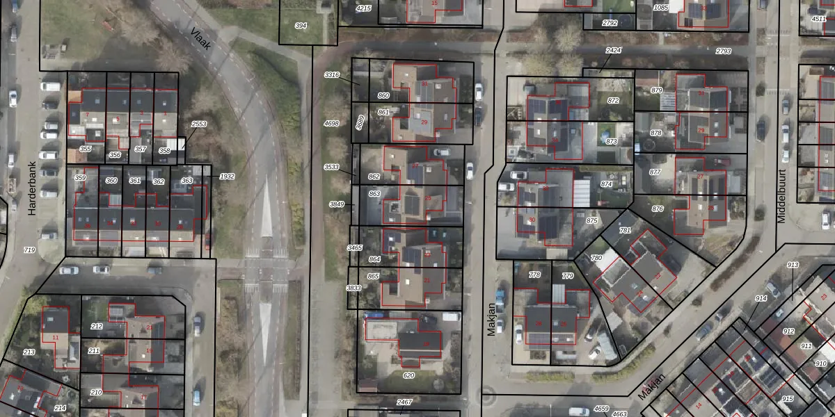 Gebruik de zoekbalk of klik op een perceel voor informatie over de adressen binnen dit perceel.