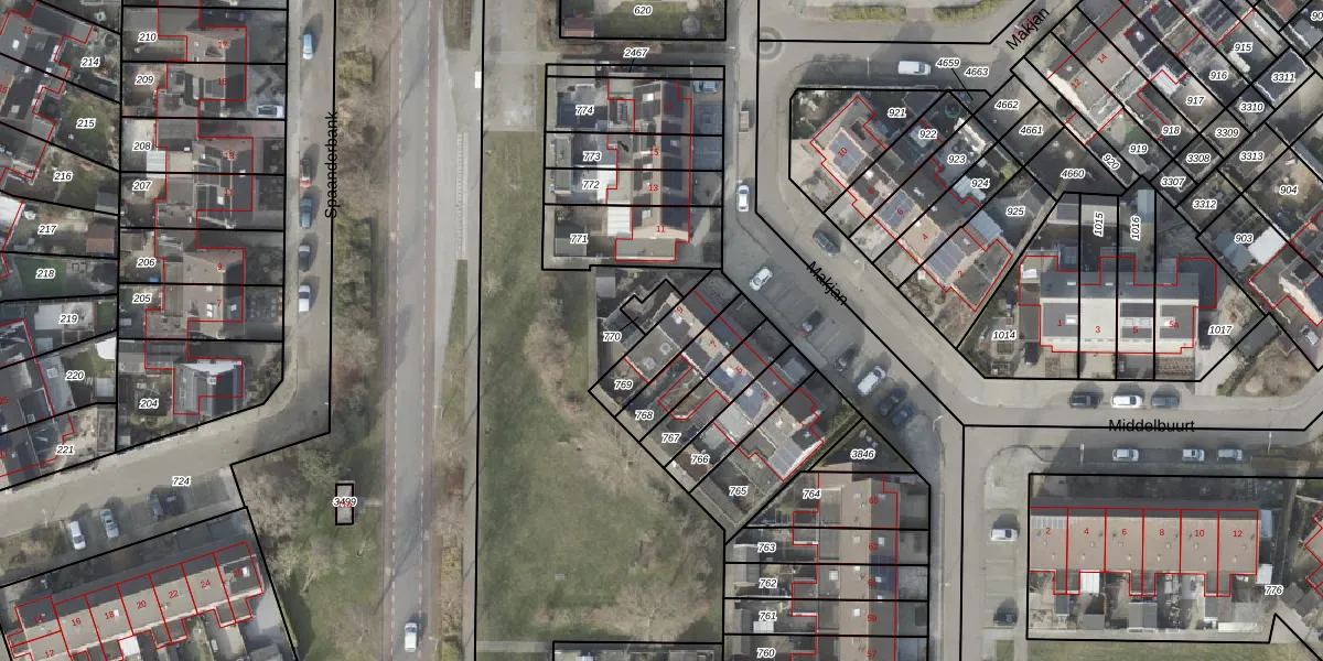 Gebruik de zoekbalk of klik op een perceel voor informatie over de adressen binnen dit perceel.