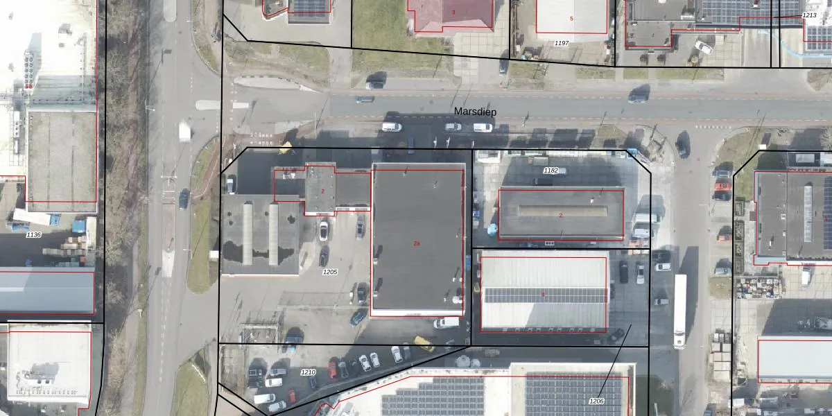 Het perceel waarop Marsdiep 2-a staat heeft een oppervlakte van 2840 m². Dit is een zeer groot perceel. De perceeloppervlakte wordt geregistreerd door het Kadaster. Gedetailleerde informatie over de maten van dit perceel kunt u vinden in het rapport Kadastrale kaart met maatvoering van Marsdiep 2-a.