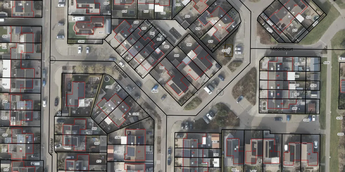 Het perceel waarop Middelbuurt 41 staat heeft een oppervlakte van 361 m². Dit is een groot perceel. De perceeloppervlakte wordt geregistreerd door het Kadaster. Gedetailleerde informatie over de maten van dit perceel kunt u vinden in het rapport Kadastrale kaart met maatvoering van Middelbuurt 41.