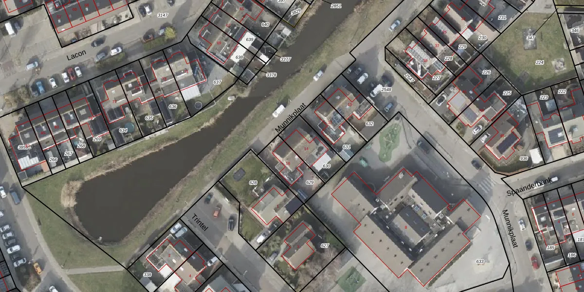 Gebruik de zoekbalk of klik op een perceel voor informatie over de adressen binnen dit perceel.