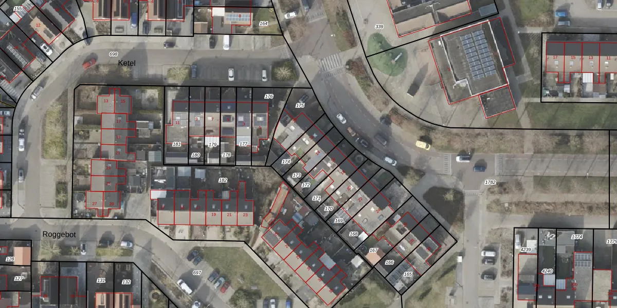 Gebruik de zoekbalk of klik op een perceel voor informatie over de adressen binnen dit perceel.