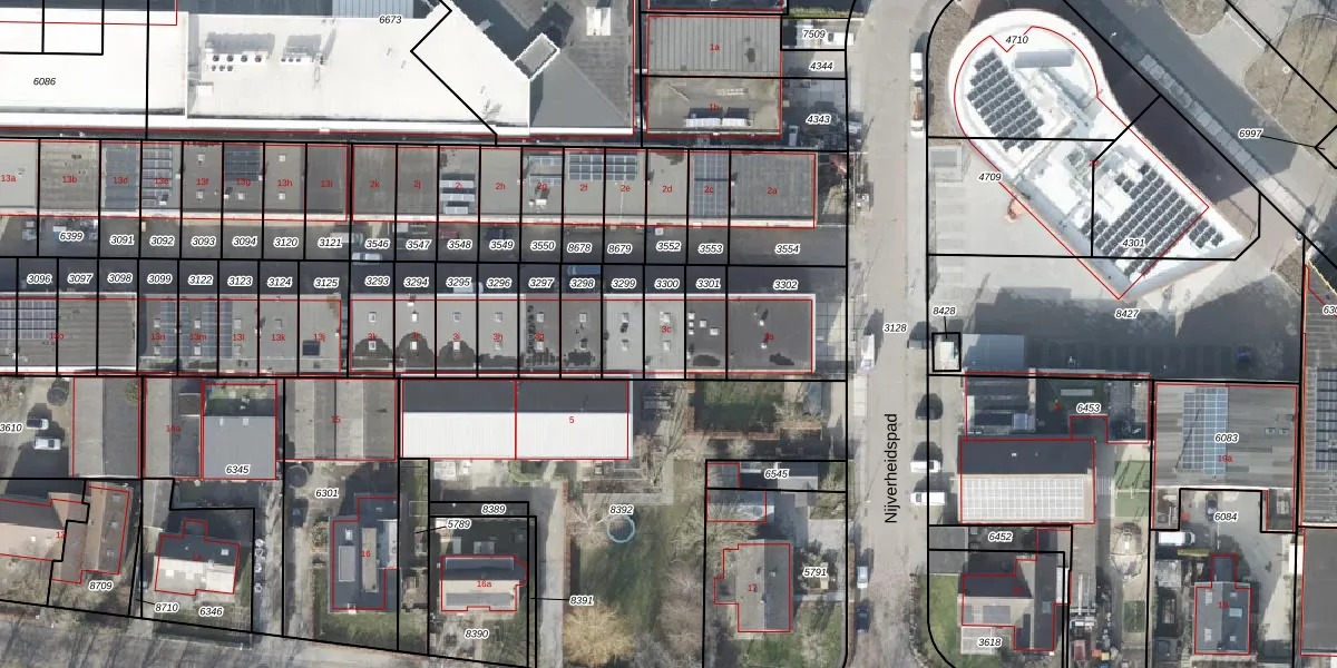 Gebruik de zoekbalk of klik op een perceel voor informatie over de adressen binnen dit perceel.