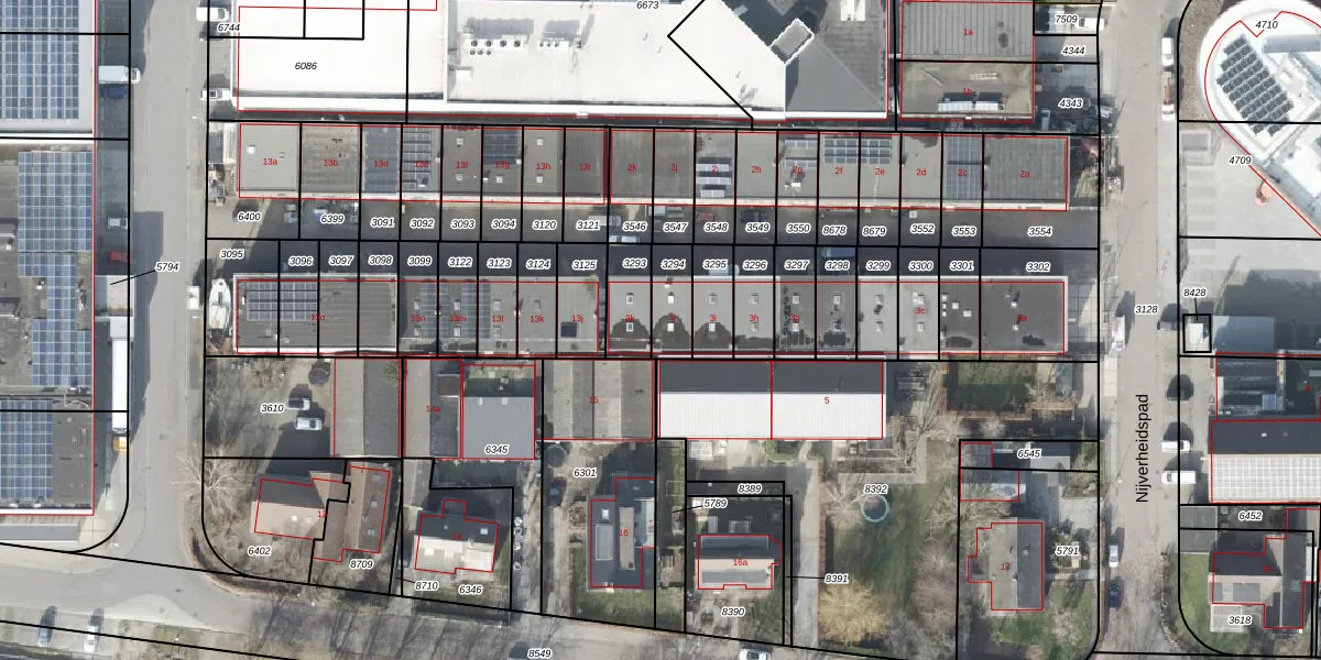 Het perceel waarop Nijverheidspad 3-j staat heeft een oppervlakte van 108 m². Dit is een middelgroot perceel. De perceeloppervlakte wordt geregistreerd door het Kadaster. Gedetailleerde informatie over de maten van dit perceel kunt u vinden in het rapport Kadastrale kaart met maatvoering van Nijverheidspad 3-j.