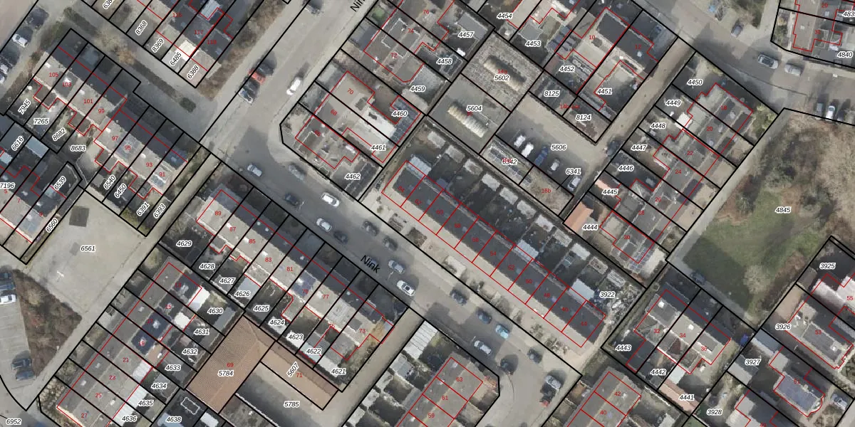 Het perceel waarop Nink 60 staat heeft een oppervlakte van 3014 m². Dit is een zeer groot perceel. De perceeloppervlakte wordt geregistreerd door het Kadaster. Gedetailleerde informatie over de maten van dit perceel kunt u vinden in het rapport Kadastrale kaart met maatvoering van Nink 60.