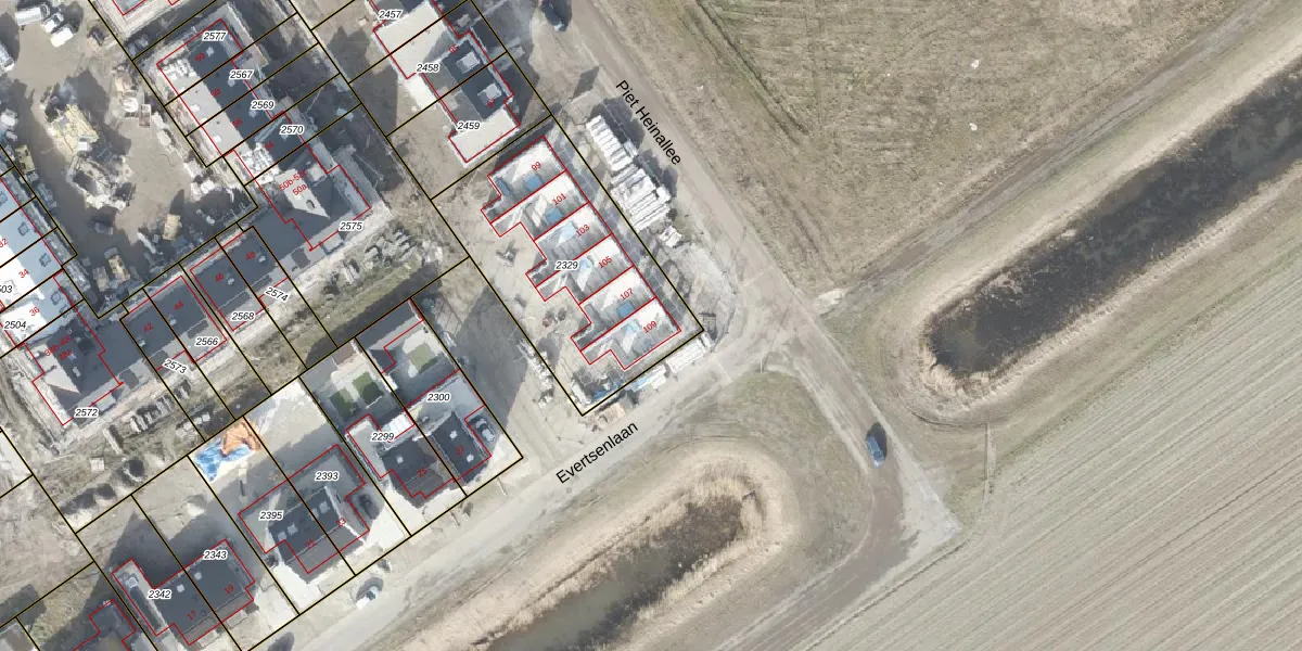 Het perceel waarop Piet Heinallee 109 staat heeft een oppervlakte van 925 m². Dit is een groot perceel. De perceeloppervlakte wordt geregistreerd door het Kadaster. Gedetailleerde informatie over de maten van dit perceel kunt u vinden in het rapport Kadastrale kaart met maatvoering van Piet Heinallee 109.