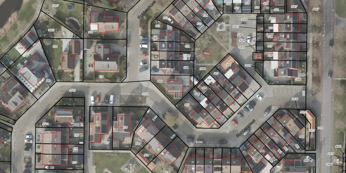 Gebruik de zoekbalk of klik op een perceel voor informatie over de adressen binnen dit perceel.