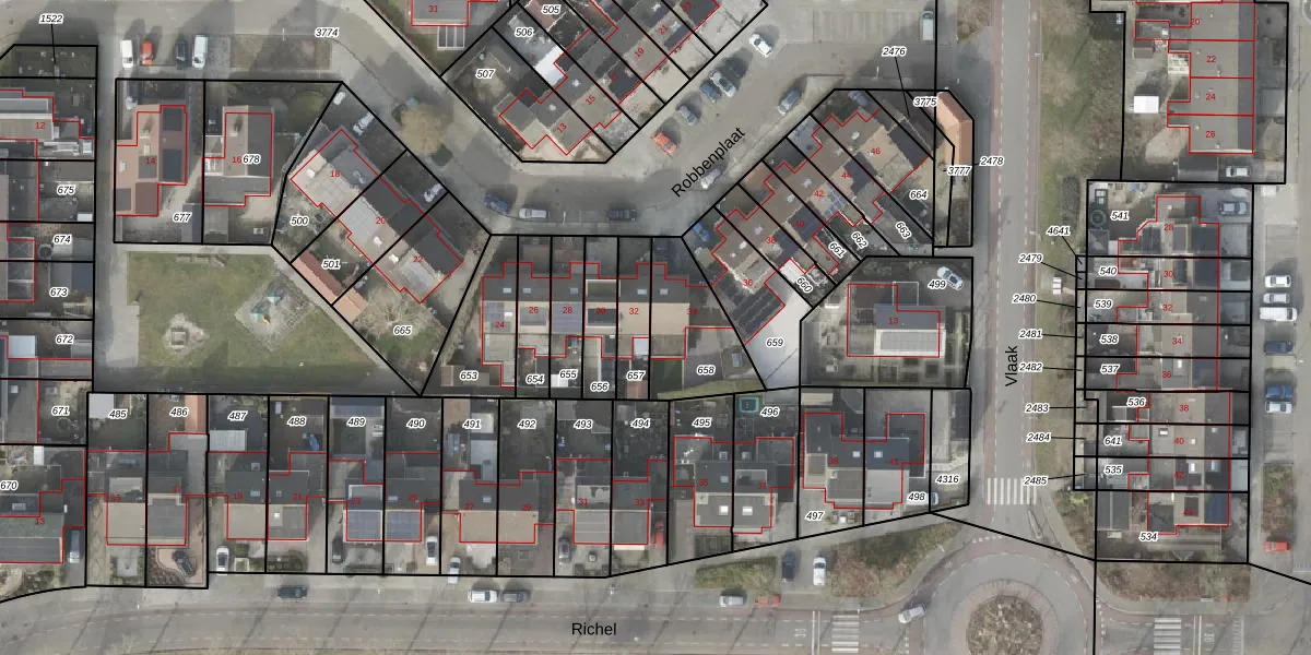 Gebruik de zoekbalk of klik op een perceel voor informatie over de adressen binnen dit perceel.
