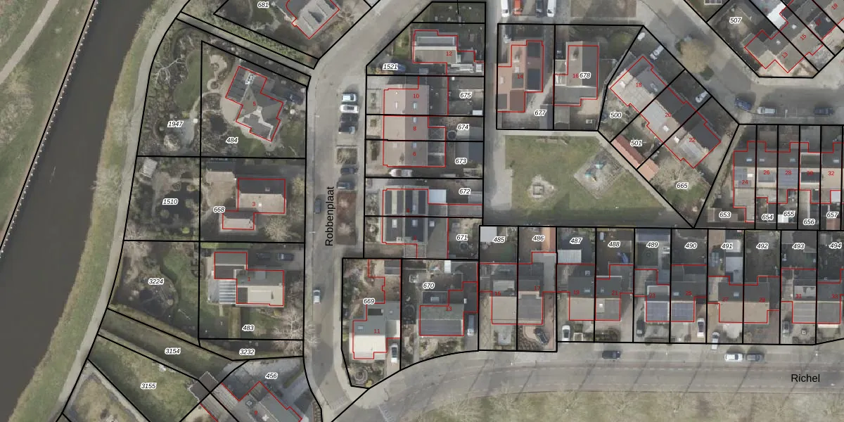 Gebruik de zoekbalk of klik op een perceel voor informatie over de adressen binnen dit perceel.